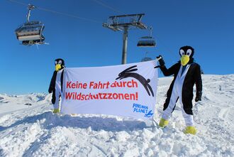 Pingwin Planet bewacht Wald- und Wildruhezonen in Skigebiet